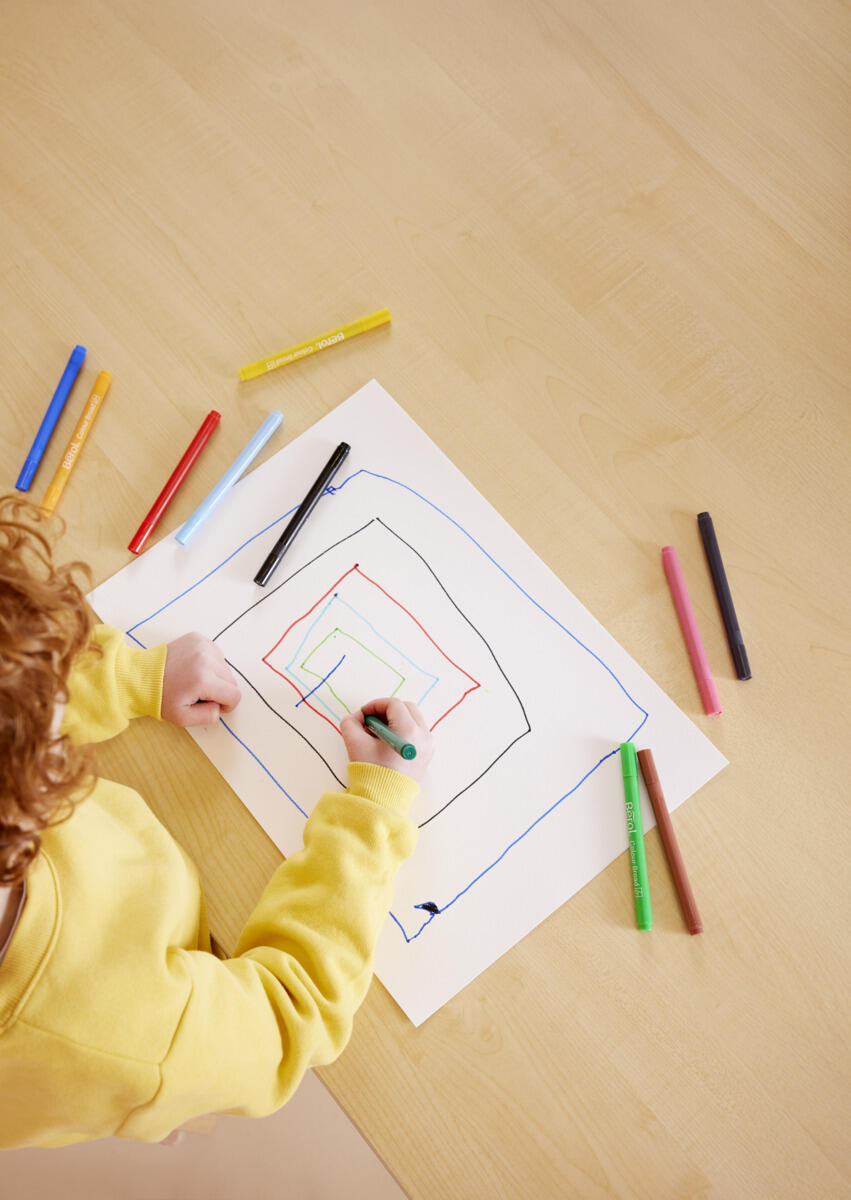 42 st/fp. Fiberpennor från Berol av hög kvalitet. Innehåller 6 st svarta. 4 av varje röd, lila, mörkblå, grön, brun. 3 av varje gul, orange, blå, ljusgrön. 2 av varje rosa, grå. Tålig, bred och rundad spets. Flödigt bläck som passar färgläggning av lite större ytor och inte blöder igenom ritpapper. Ventilerad huv och pennkropp av plast, i samma nyanser som bläcket. Pennan kan ligga utan huv i upp till två veckor utan att torka ut. Bläcket kan tvättas bort från kläder, men skydda alltid underlag och textilier vid användande. CE-märkta. PVC-fri. Från 3 år.