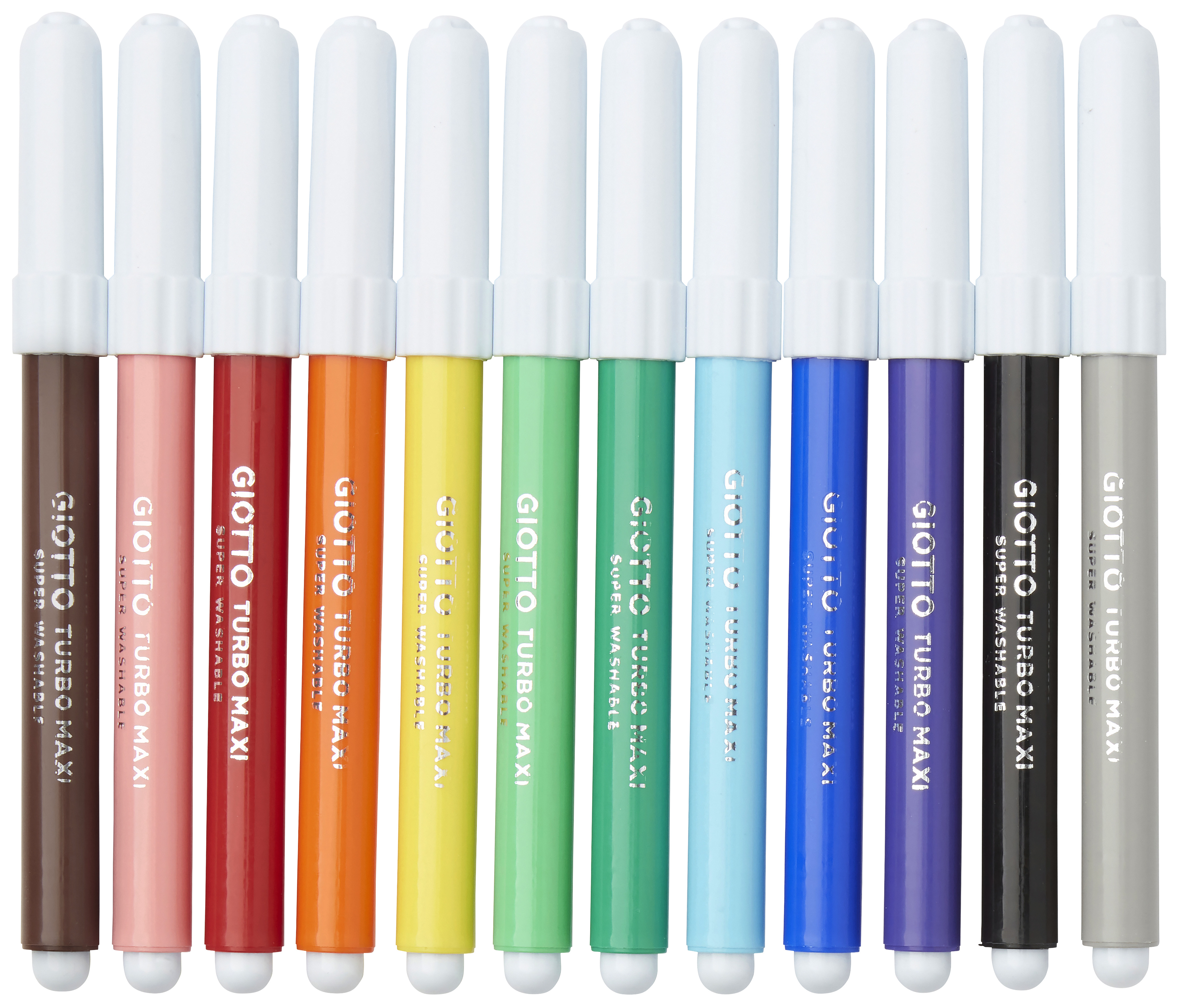 12 st/ask. Tjocka fiberpennor av hög kvalitet i intensiva färger med en extra tålig och åtsittande spets. Ventilerad huv med säkerhetsplugg som gör den kvävningssäker. Linjebredd från 1,3 mm. Spettsbredd 5 mm. Giftfritt vattenbaserat bläck som går lät att tvätta av från de flesta textilier i maskintvätt 40 °C. Tvättas av från huden med tvål och vatten. PVC-fri. Från 3 år.