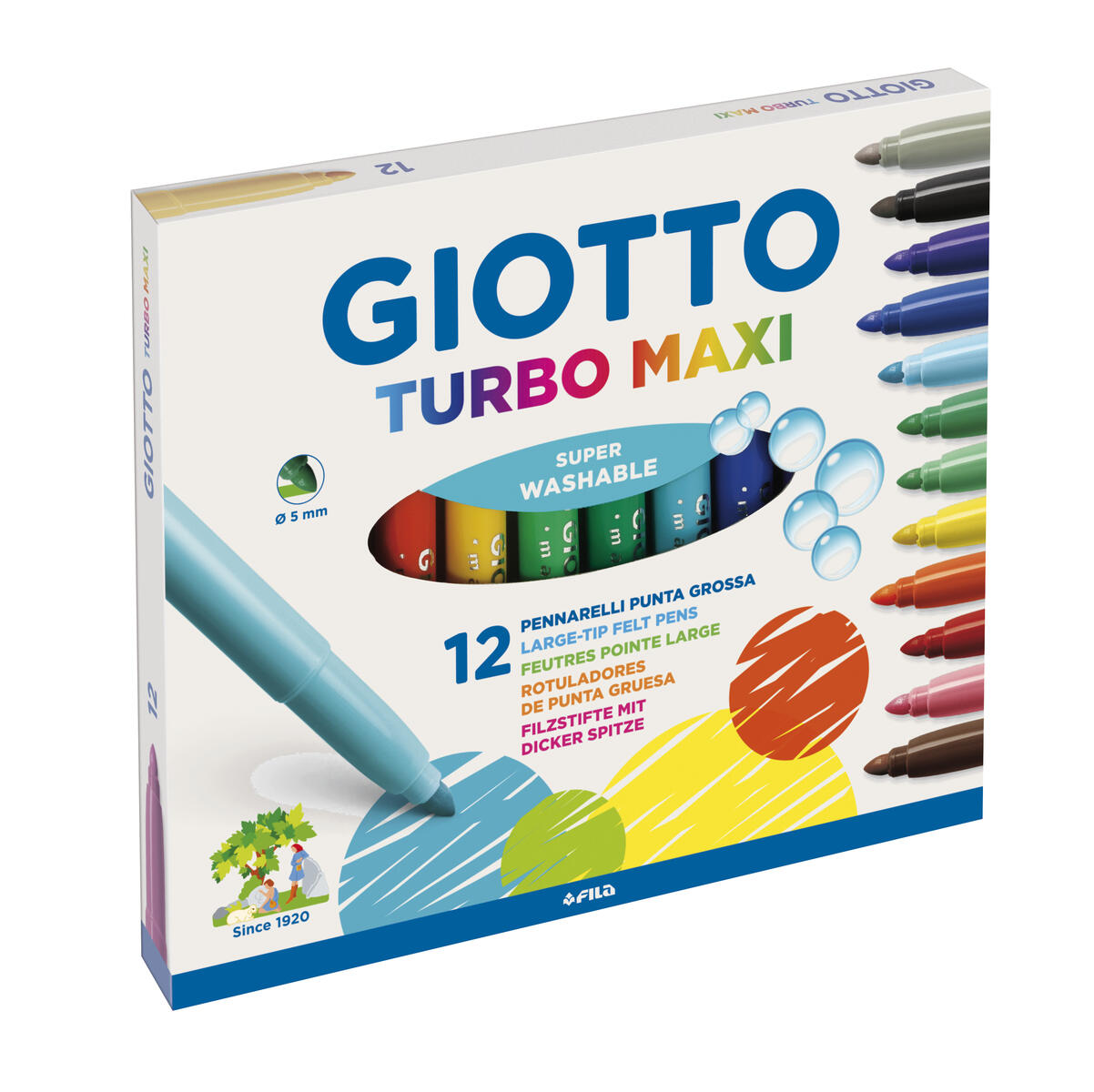 108 st/fp. 12 färger. Extra tjocka fiberpennor av hög kvalitet i intensiva färger med en extra tålig och åtsittande spets. Spetsen går inte att trycka in i pennan. Ventilerad huv med säkerhetsplugg som gör den kvävningssäker. Linjebredd från 1,3 mm. Spetsbredd 5 mm. Vattenbaserat bläck som går lätt att tvätta av från de flesta textilier i maskintvätt 40 °C. Tvättas av från huden med tvål och vatten. Tjocklek penna: 13 mm. Tjocklek spets: 5 mm. Förpackning gjord utav återvunnen plast. PVC-fri. Från 3 år.
