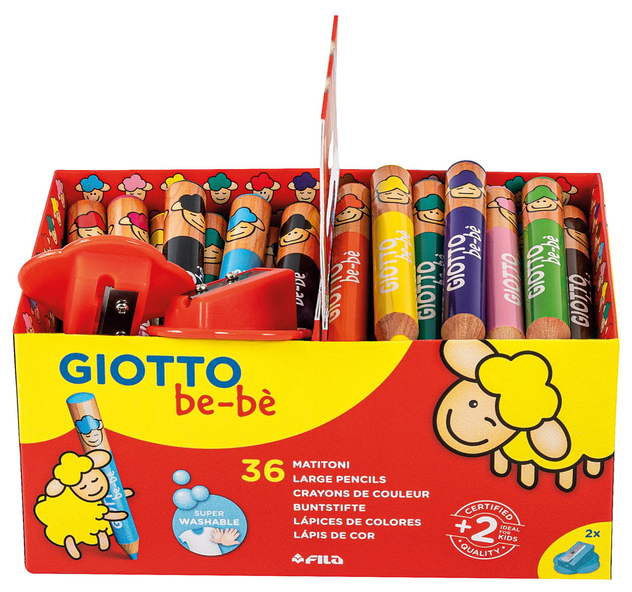 36 st/fp. Extra tjocka färgpennor som passar de riktigt små barnen. Mjuka, klara och användarvänliga färger. Pennorna är lätta att vässa och lätta att tvätta av. 7 mm färgstift. Pennvässare ingår. PVC-fri. Från 2 år.