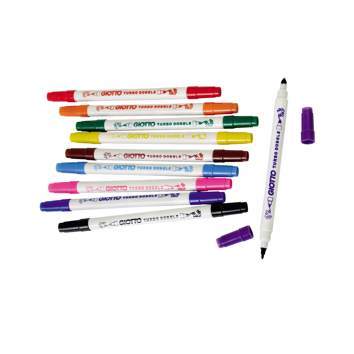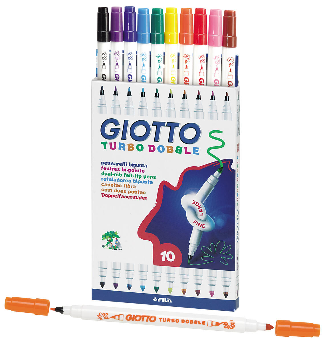 12 st/ask. Tjocka fiberpennor av hög kvalitet i intensiva färger med en extra tålig och åtsittande spets. Ventilerad huv med säkerhetsplugg som gör den kvävningssäker. Linjebredd från 1,3 mm. Spettsbredd 5 mm. Giftfritt vattenbaserat bläck som går lät att tvätta av från de flesta textilier i maskintvätt 40 °C. Tvättas av från huden med tvål och vatten. PVC-fri. Från 3 år.