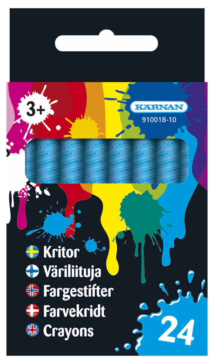 12 kritor/ask. Mjuka ljusbeständiga, oljepastellkritor med hög pigmenthalt och god täckförmåga på papper, kartong, pannå och duk. Färgerna kan blandas. Passar en rad tekniker som skrapteknik och batikmålning. Pappersomslag. Tjocklek penna: 10 mm. Längd: 70 mm. Från 3 år. PVC-fri.