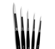6 st/fp. Innehåller storlekarna 4, 6, 8, 10, 12 och 14. Rund borst av syntetiskt Kolinsky-hår i hög kvalitet. Formfast och vätskehållande: perfekt för akvarellmålning och tunnare färger inklusive sidenmålning. Lackerat skaft av FSC-certifierat trä och aluminiumskoning.
