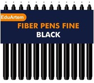 12 st svarta pennor/ask. Fiberpennor från Berol av hög kvalitet. Tålig, bred och rundad spets. Flödigt bläck som passar färgläggning av lite större ytor och inte blöder igenom ritpapper. Ventilerad huv och pennkropp av plast. Pennan kan ligga utan huv i upp till två veckor utan att torka ut. Bläcket kan tvättas bort från kläder, men skydda alltid underlag och textilier vid användande. Linjebredd 0,6 mm. Längd 135 mm. ø 11 mm. CE-märkta. PVC-fri. Från 3 år.