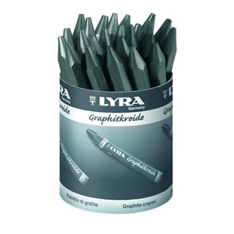 12 st/fp. Grafitkrita med hög koncentration grafit. Både spetsen och hela kritans längd kan användas vid teckning. Löses med vatten efter teckning eller används på fuktat papper för olika effekter. Fixering skyddar ytan på färdigt verk. Konstnärsmaterial.