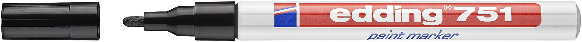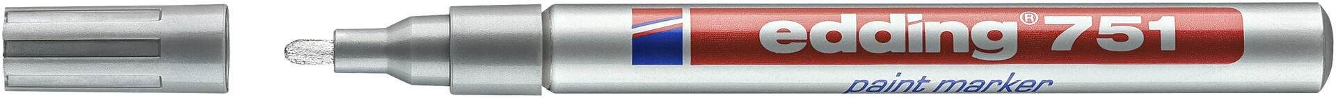 En mycket fin, nålliknande spets för att markera små föremål. Bläcket är vatten- och ljusbeständigt. Färgen är ogenomskinlig och passar för papper, trä, läder, plast, glas och metall. Värmebeständigheten är 400 °C. Linjebredd 0,8 mm. Aluminiumram.