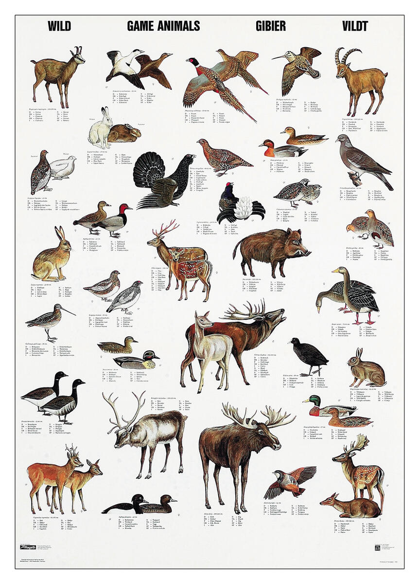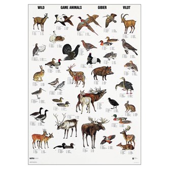 Visar 32 av de vanligaste fåglarna. Mått: 70x100 cm. Namnen på fåglarna på 14 språk: danska, engelska, tyska, spanska, franska, finska, italienska, isländska, norska, holländska, portugisiska, ryska, svenska och latin.