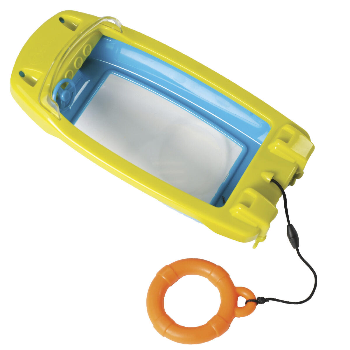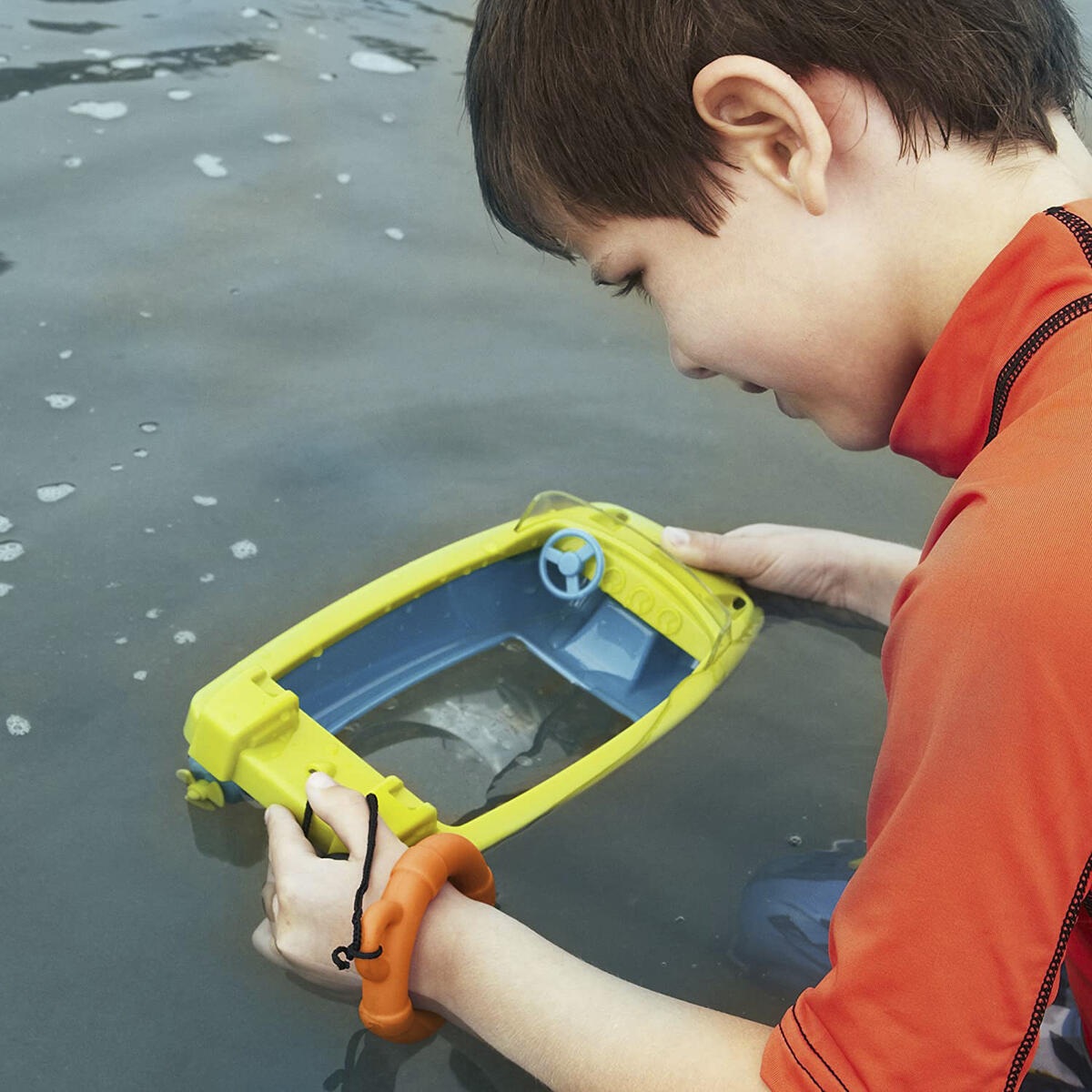 Finurlig båt med genomskinlig, förstorande botten samt rörlig ratt och propeller. Justerbar handledsrem. Låt barnen utforska undervattensmiljöer både inomhus och utomhus. Förstorar 3x. Av ABS. PVC-fri. Från 3 år.