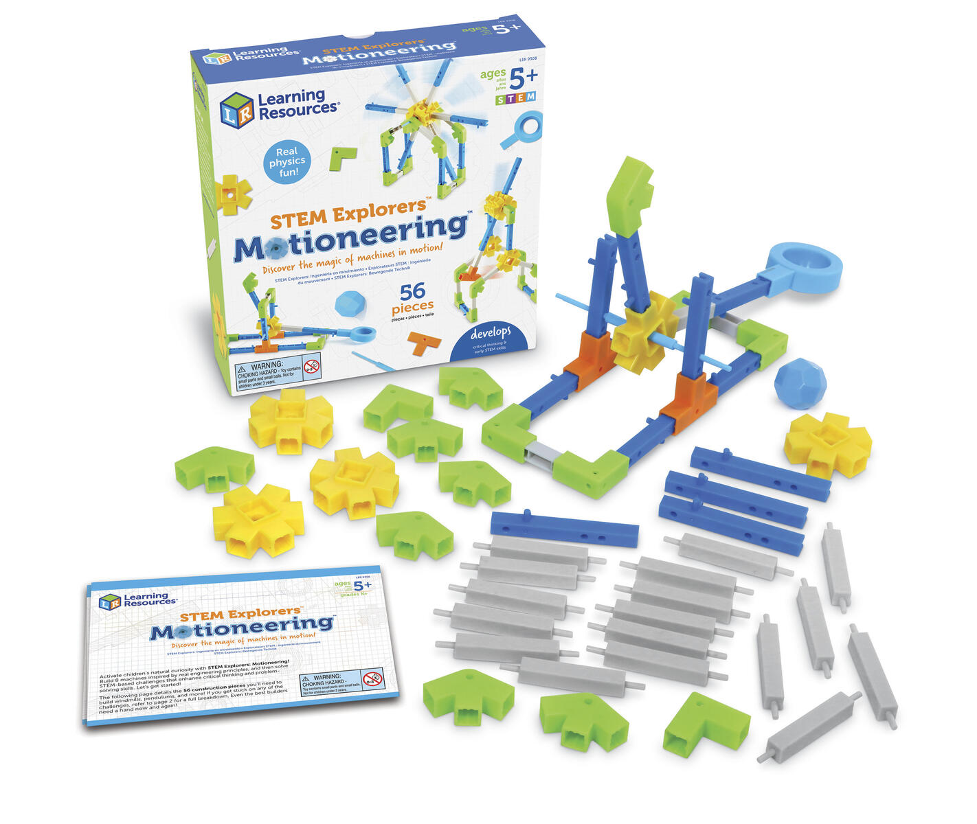 Byggleksats för utforskning av fysik och teknik. Bygg, testa och finjustera katapult, blida och väderkvarn. Låter unga ingenjörer utveckla kritiskt tänkande, problemlösning och finmotorik genom roliga experiment. PVC-fri. Från 5 år.