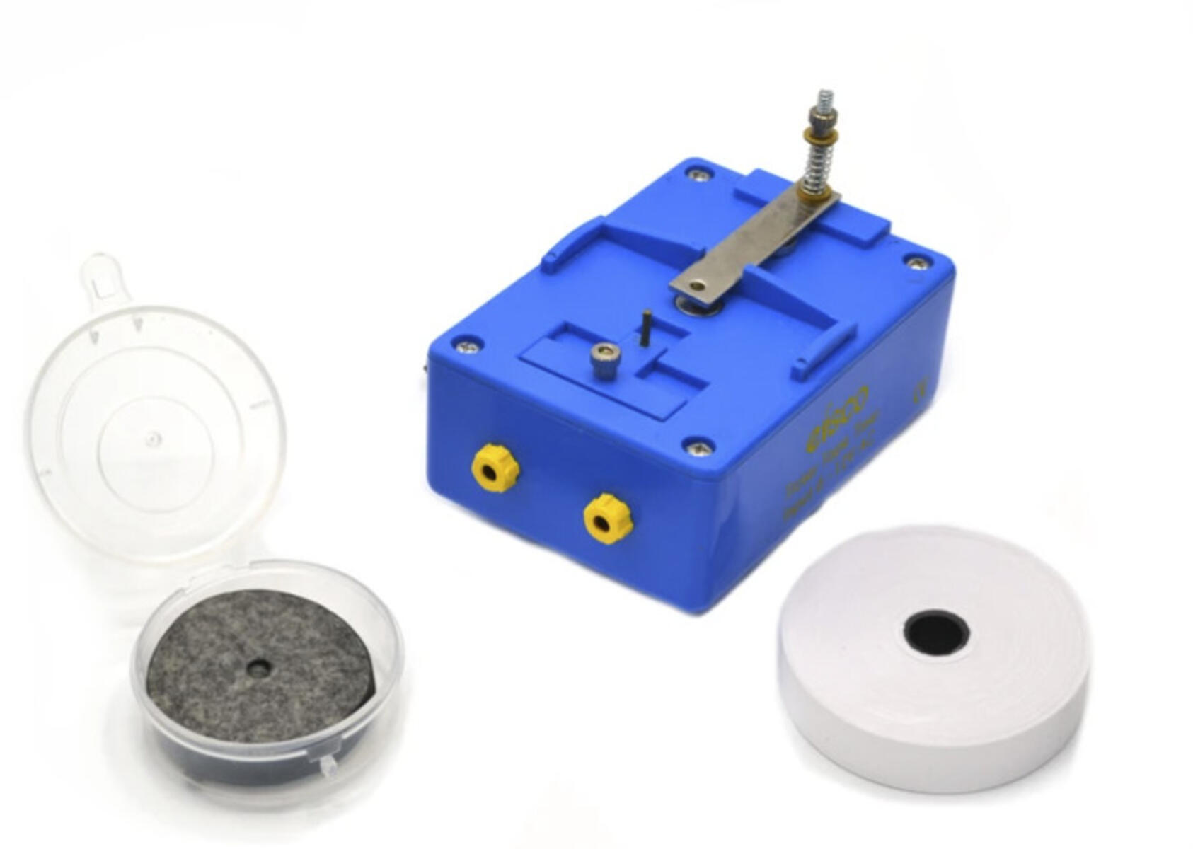 Tempografen gör 50 markeringar per sekund och kopplas enkelt in till en växelströmkälla AC 12 V (ingår ej) via 4 mm-kontakter. Tempografen har ett monteringsfäste i botten. Levereras med en rulle pappersremsa (50 m) samt 100 kolfiberskivor.
