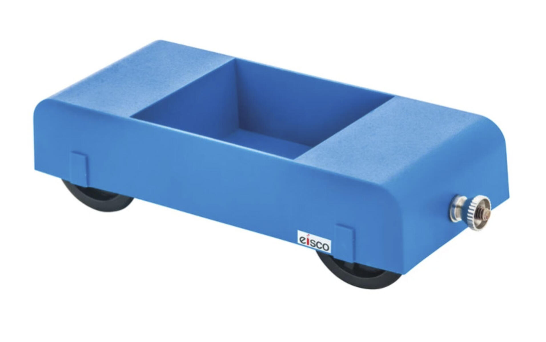 Vagn som kan användas med lutande plan, vikter och remskivor för att studera förhållandet mellan energi och arbete. Gjuten i ett stycke med centralt utrymme för tillägg av vikt. Mått (LBH): 130x55x25 mm.