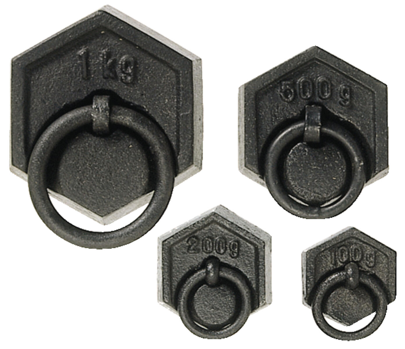 9 kvalitetsvikter av mässing. Innehåller vikterna: 1 g, 2 st 2 g, 5 g, 2 st 10 g, 20 g, 50 g, 100 g, totalvikt 200 g. Levereras i en plastlåda med avgjutna hål för vikterna.