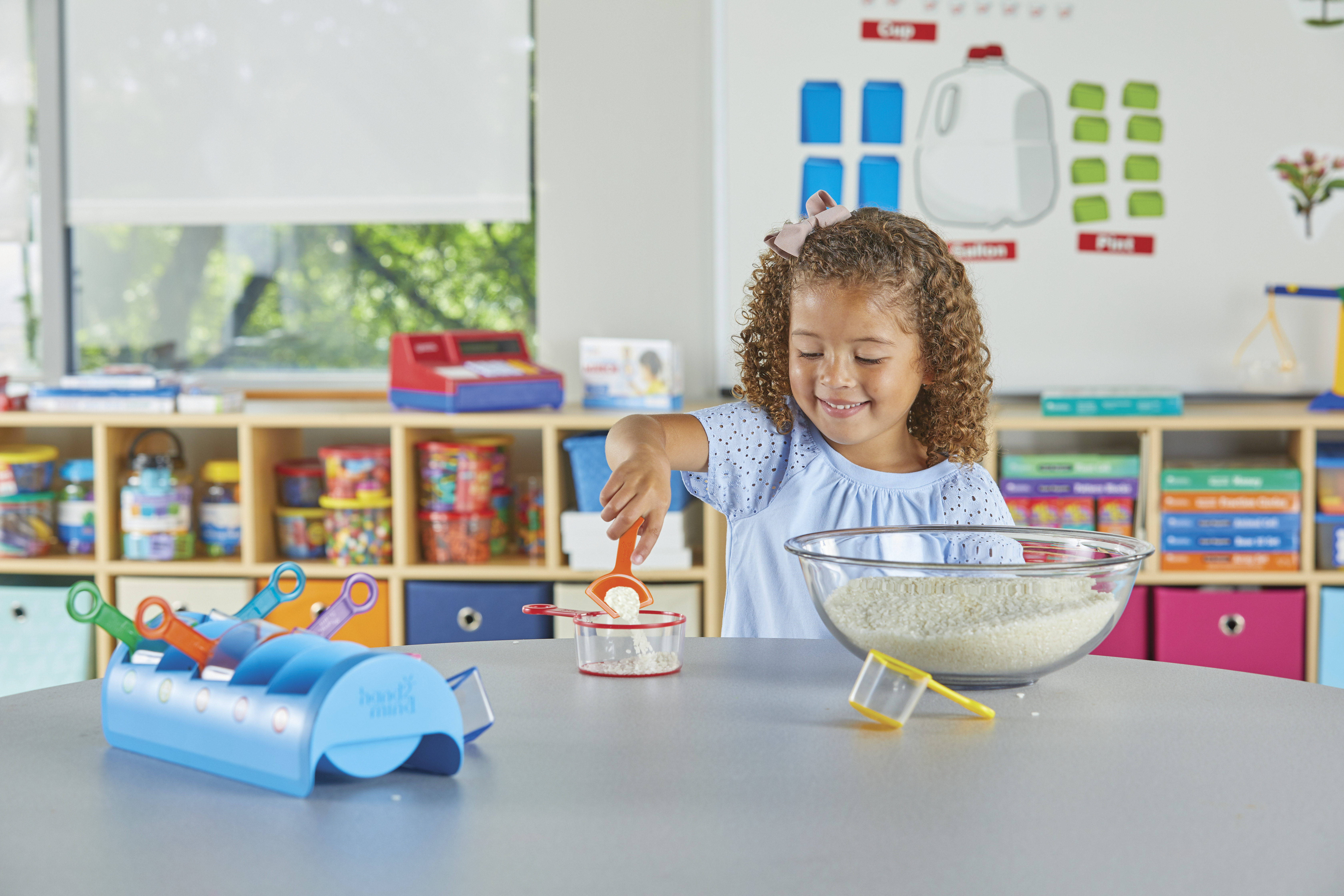 Introduktionsset till mätning som ger barn förståelse för volym-, vikt- och bråkförhållanden. Innehåll: 4 måttkoppar, 1 vågskål, 20 kuber, 10 aktivitetskort och 1 aktivitetsguide. PVC-fri. Från 3 år.