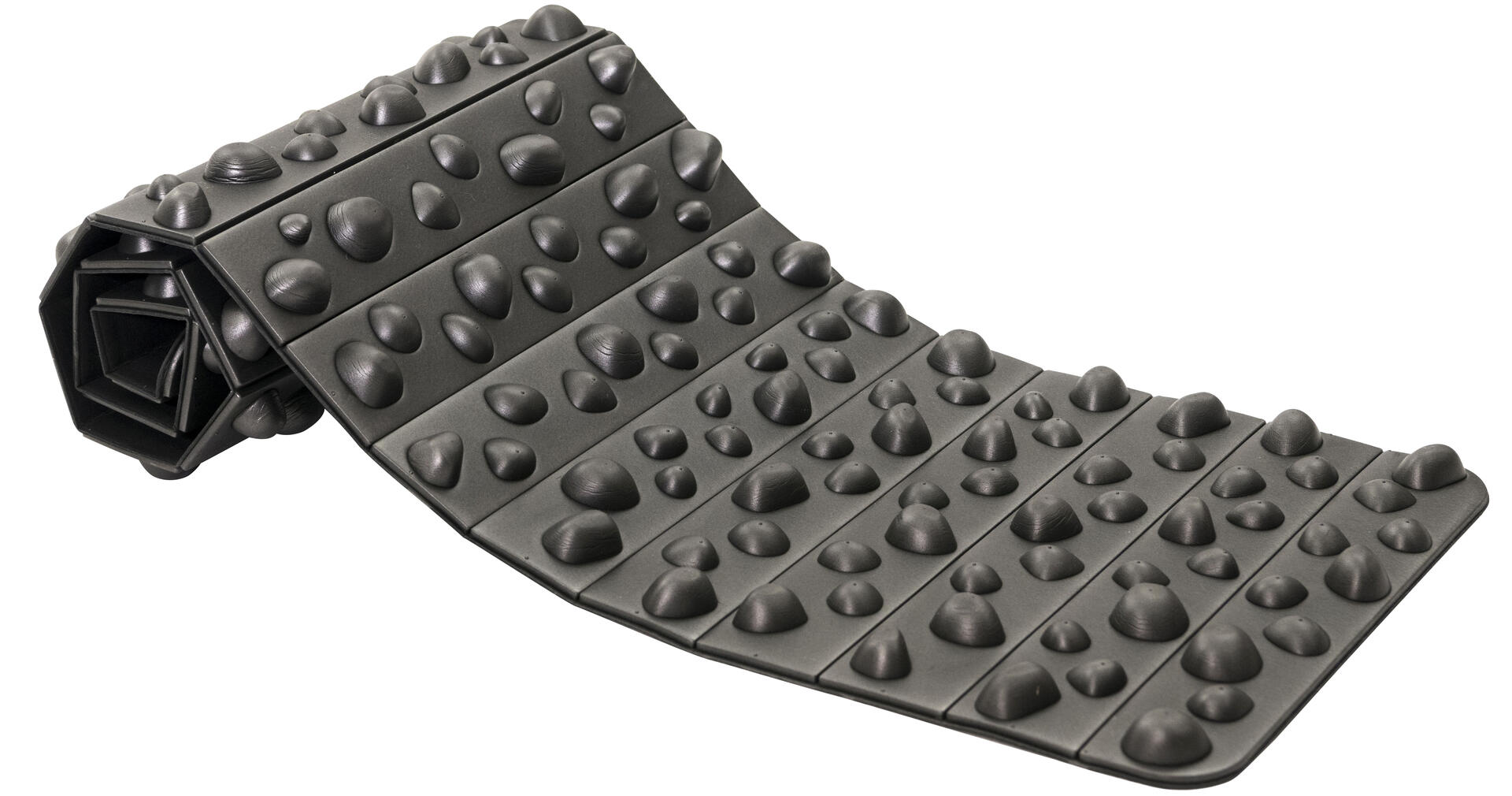 En taktil matta som ger tryck på specifika delar av fötterna, vilket ger stimulans till hela kroppen. Endast några minuters stående på massagemattan ökar blodcirkulationen och ämnesomsättningen, samtidigt som stress minskar. Massagemattan kan enkelt användas både stående, sittande eller för att göra taktila gångvägar och aktiviteter. Rullas ihop för förvaring. Av EVA.