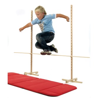 En perfekt höjdhoppsställning för skola och för träning. Tillverkad av aluminium med fot av pulverlackerat stål med hjul för enklare transport. Från 30 cm upp till 220 cm.