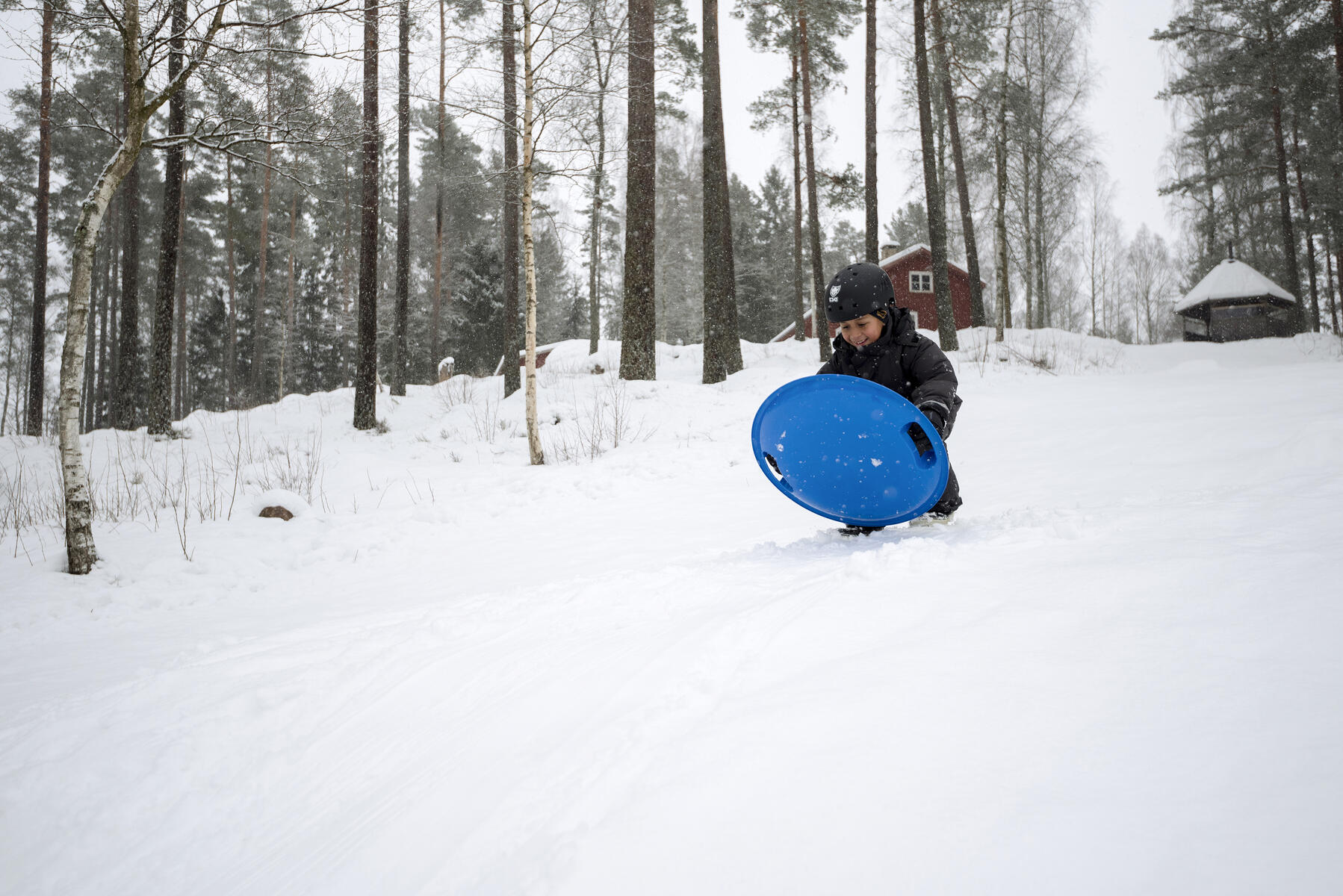 Ett roligt alternativ till vanliga pulkor. Används under uppsikt av vuxen. Blandade färger. Av PVC utan förbjudna ftalater med kärna av kallskum. Ej lämplig för barn under 3 år.