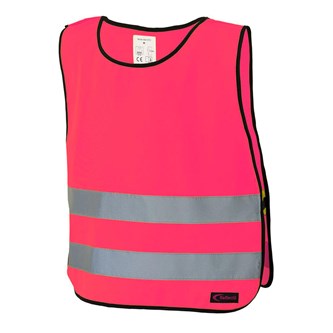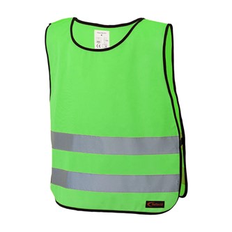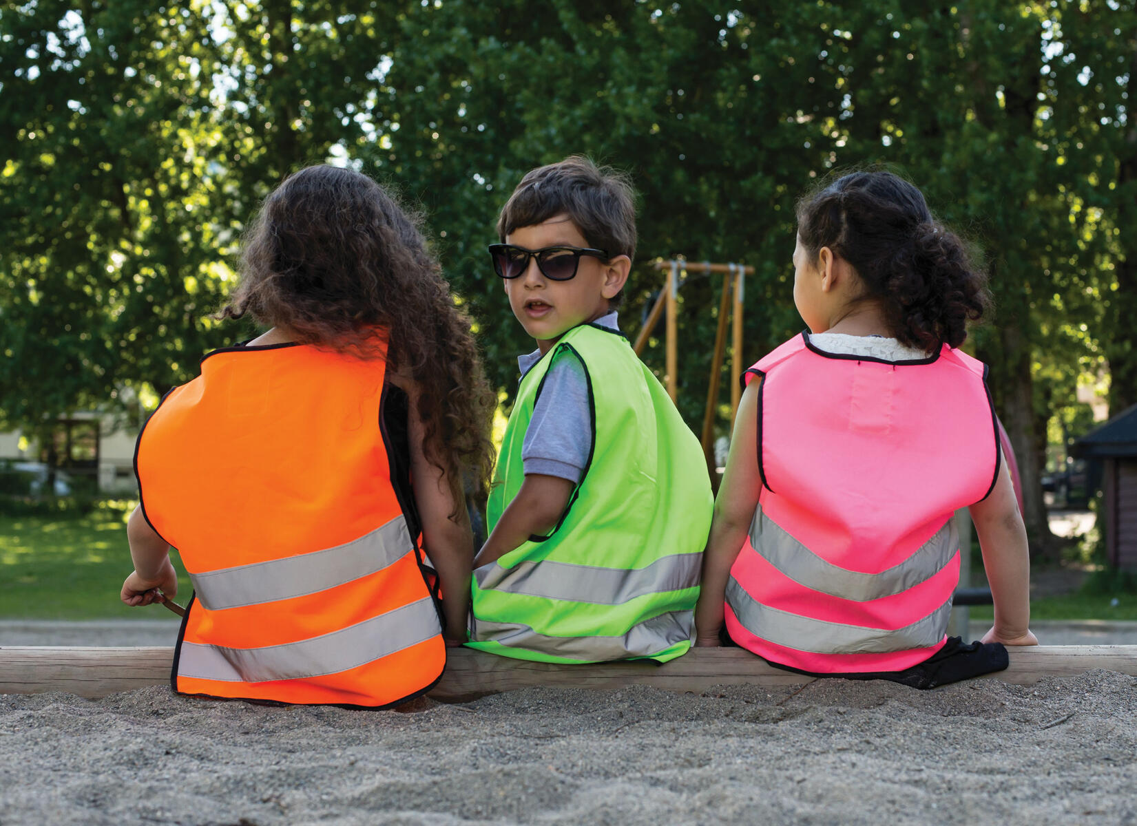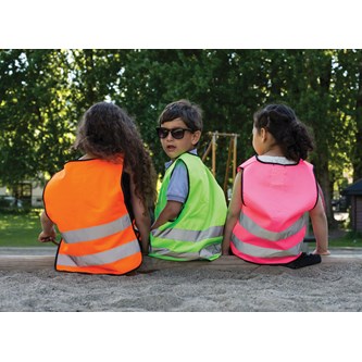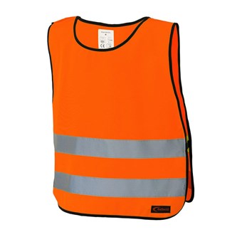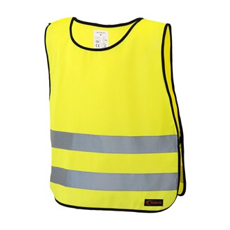 Mått: 45x35 cm. Barnväst med av- och påtagning och delvis justerbar storlek via kardborreknäppning och resår i sidorna. Även kardborreknäppning på ena axeln som en säkerhetsåtgärd. Testad och godkänd enligt standard EN 17353. Säkerhetsprodukt vars funktion försämras när den blir smutsig. Rekommenderad livslängd är 3 år men bör undersökas årligen. Ej avsedd för lek. Se storleksguide innan order. Av polyester. Tvättas i 40 °C.