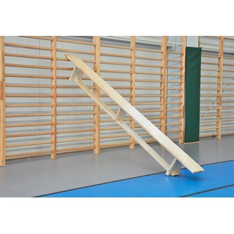 Gymnastikbänk av limmat trä. Ben och mittstöd av slitstark plywood och fötter av gummi som inte lämnar märken. Alla kanter på toppen, balken och benen är rundade. Bänken har en krok som gör att den kan hängas på en ribbstol eller i öppningen till plintarna. När bänken är vänd kan bänkbalken, 100 mm bred och 30 mm tjock, användas som balans för övningar. Alla element är målade med slitstark vattenbaserad lack. Bänkskivans mått: 3 cm tjock, 25 cm bred. Höjd: 31 cm. Bänken uppfyller kraven i EN 913.