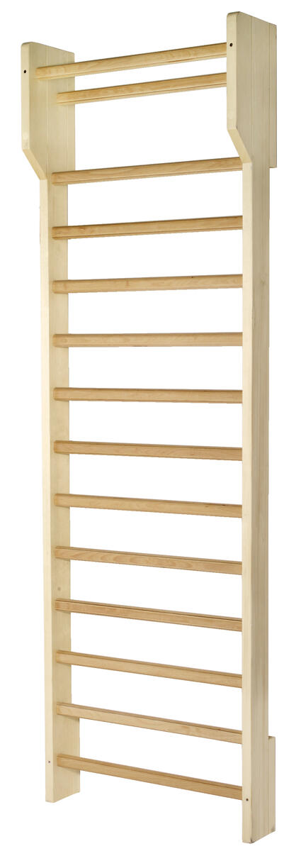 Klarlackerad ribbstol med 17 ovala ribbstolspinnar som är av massivt bokträ. Ramen är av kraftig furu. Mått på ribbor 3x4 cm. Totala måttet: 90x256 cm. Godkänd enl. Standard PN-EN 12346:2001 och 913:2008. Hängare för att fästa ribbstolen i väggen ingår.