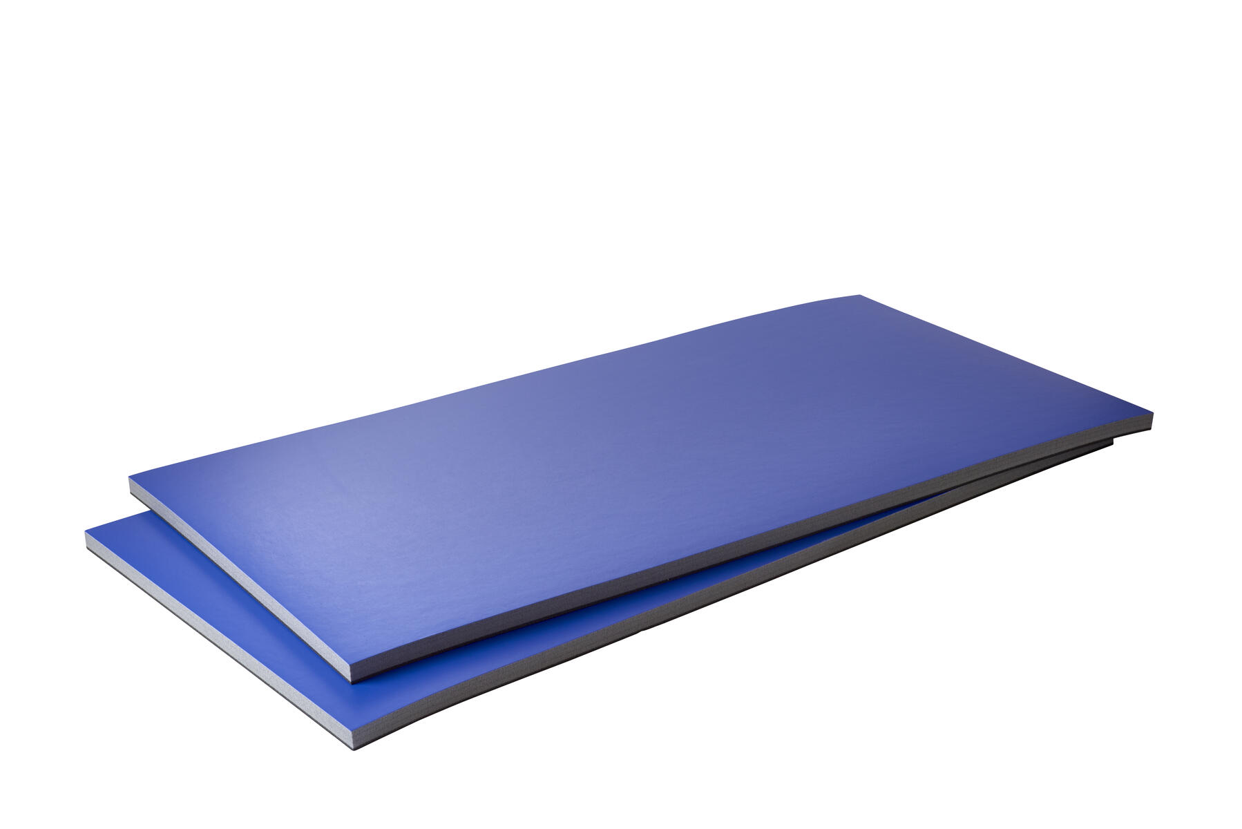 Rejäl matta av kallskum i röd eller blå armerad polyester, Oeko-Texcertifierad, klass 1 och plast av PVC, utan förbjudna ftalater. Vikbar på mitten för att spara plats vid förvaring. Från 3 år.