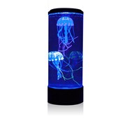 Ett upplyst akvarium med maneter. Det finns olika belysningsalternativ: att ha en färg eller en ljusshow på 6 olika färger. De konstgjorda maneterna rör sig på ett naturligt och realistiskt sätt. Luftpumpen trycker in luft i vattnet vilket gör att maneterna rör sig. LED-lampor. Efter 4 timmar stängs den av automatiskt. Den rymmer ca 3,9 liter vatten. USB kabel medföljer. Mått: 15x35 cm.