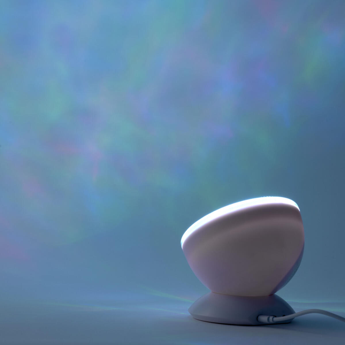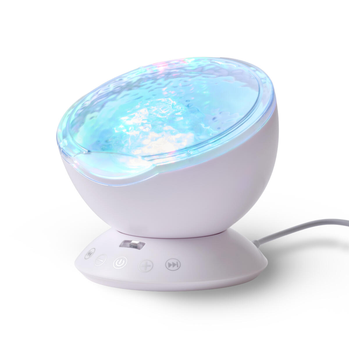 Den här lilla projektorn lyser upp rummet med underbara färger, så det liknar havets vågor. Den har högtalare och kan kopplas till mobiltelefon, dator, lärplatta eller spela musikfiler från ett TF-kort. 4 förinställda ljudlägen och 7 olika ljuslägen. Strömförsörjning via USB-kabel. Mått: 12,6x12,6x10,5 cm.