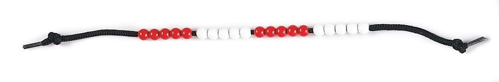 Räknekedja med 20 pärlor i två olika färger, i sekvenser om 5 pärlor. För övning i räkning och antalsuppfattning. Perfekt stöd när man ska börja lära sig räkna, känna igen antal och dela upp tal. Pärlornas diameter: 10 mm.