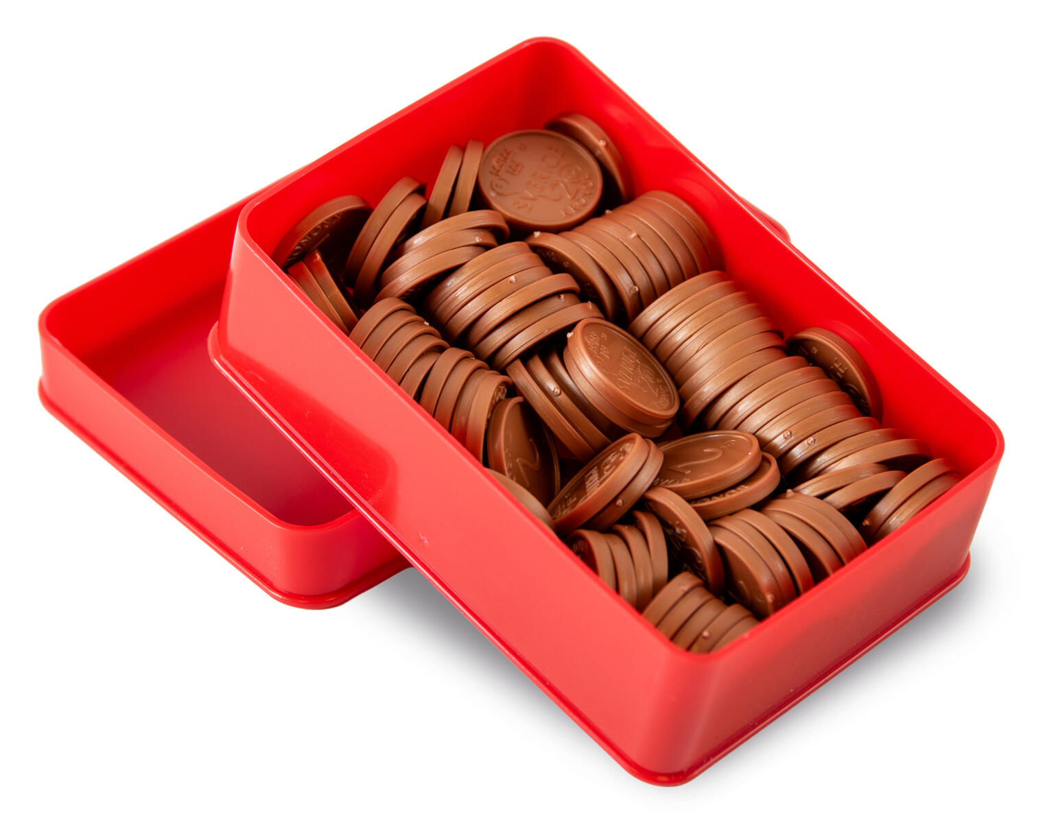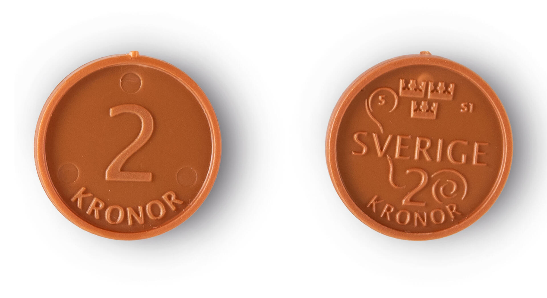 Samma diameter som riktiga mynt, men med större tjocklek. Av PP, PVC-fri.
