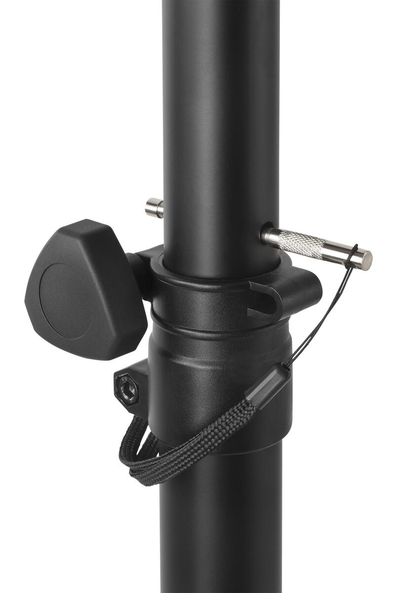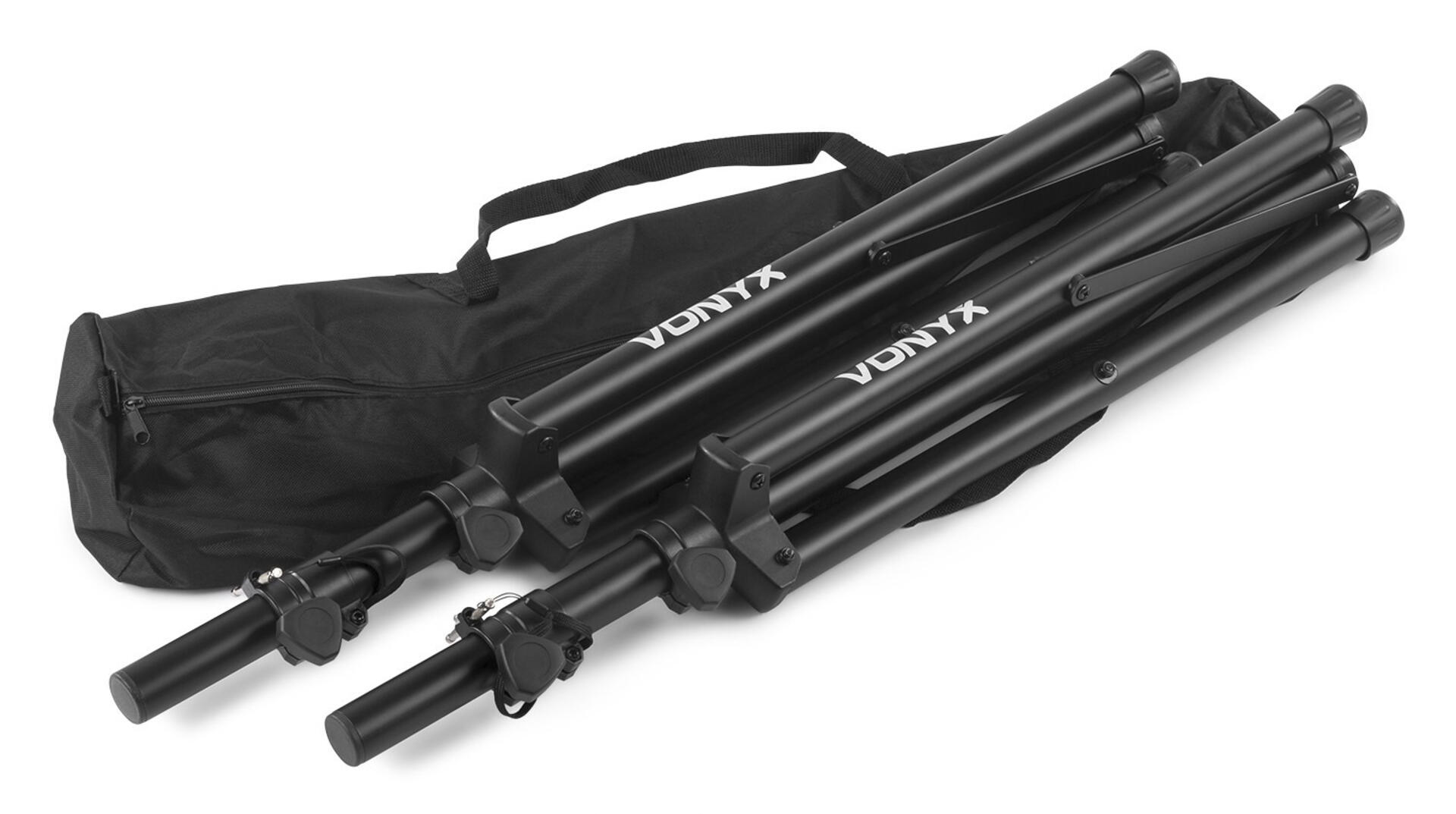 2 st. Justerbara stadiga högtalarstativ i aluminium. Passar till alla högtalare med infästninghål 3,5 mm. Justerbar höjd, 5 förinställda höjder. Tål vikt upp till 30 kg. En bärväska ingår. Mått: höjd 100–175 cm. Mått ihopfälld 13x10x92 cm.
