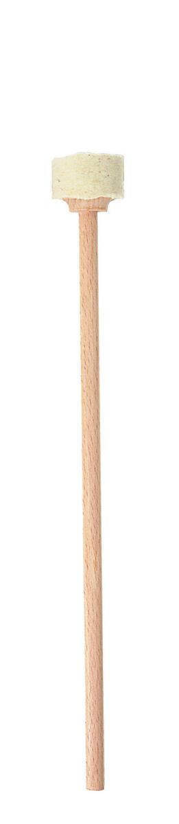 Av trä, 25 cm lång. Används till t.ex. trummor och cymbaler.