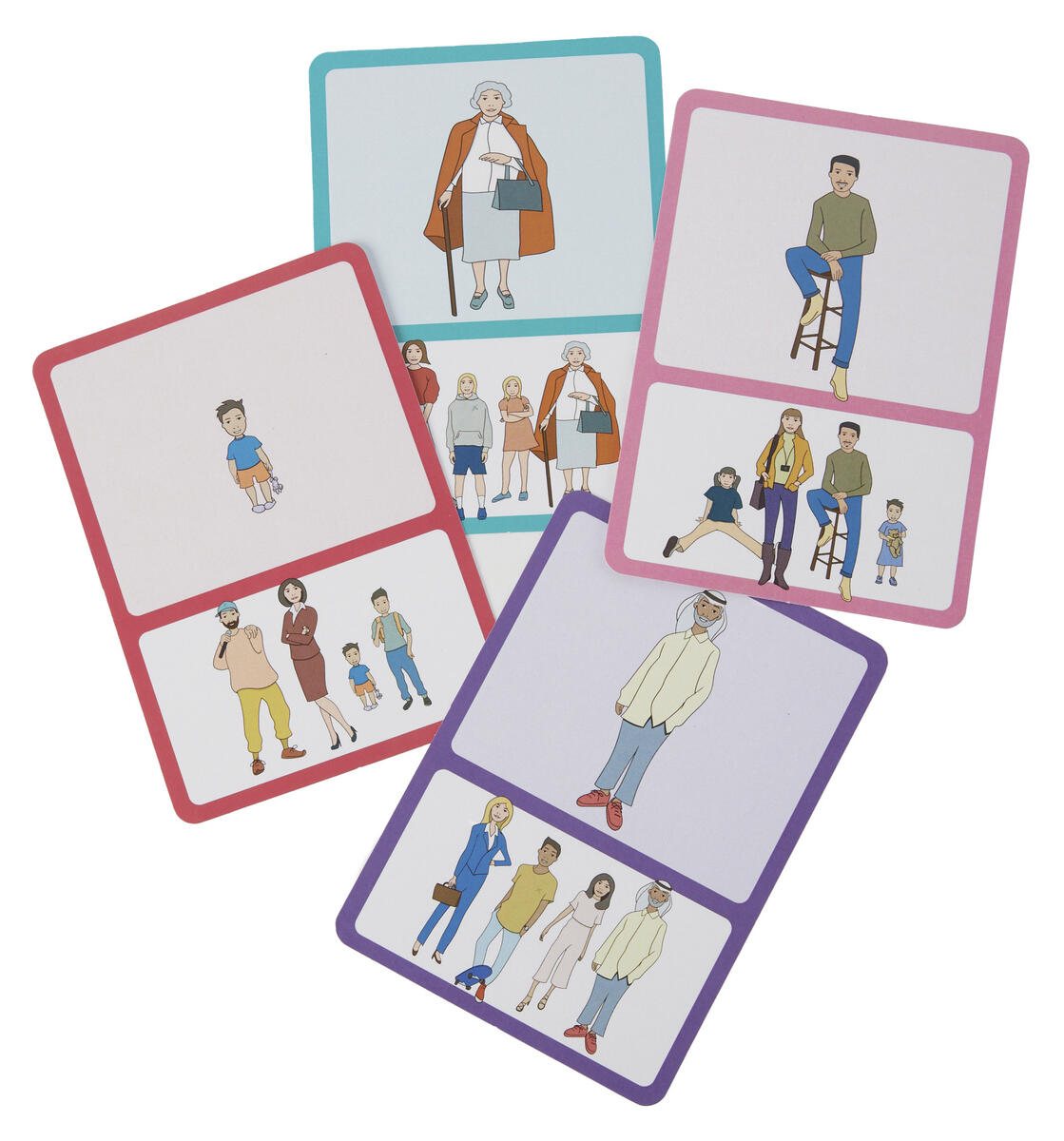 Målet med spelet är att lära sig att respektera våra olikheter i kön, etnicitet och familjesammansättningar och att alla familjer är unika. 36 kort uppdelat i 9 familjer med vardera 4 familjemedlemmar. PVC-fri. För 2-6 spelare. Från 4 år.