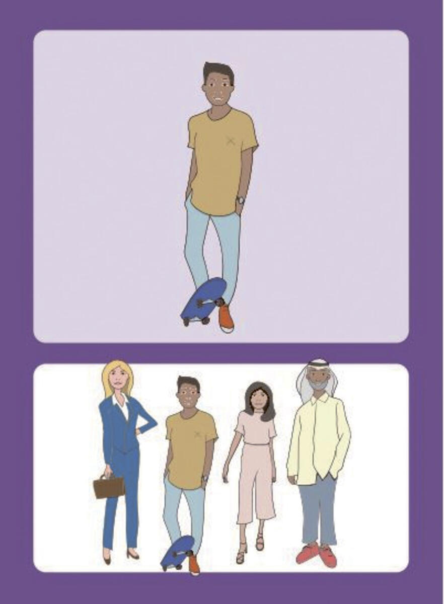 En plansch som visar våra barn mångfald och människors olikheter och lika värde. Använd exempelvis som underlag då barn övar sig på att beskriva vad de ser, eller låt barnen skapa egna sagor/berättelser utifrån bilderna. Kan lamineras. Mått: 50x70 cm.