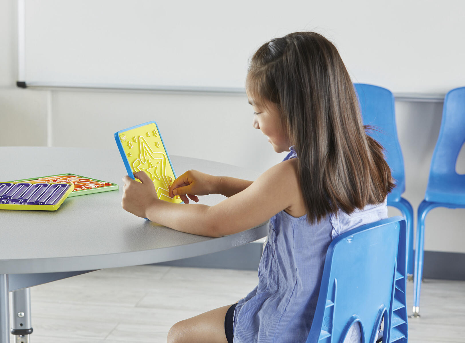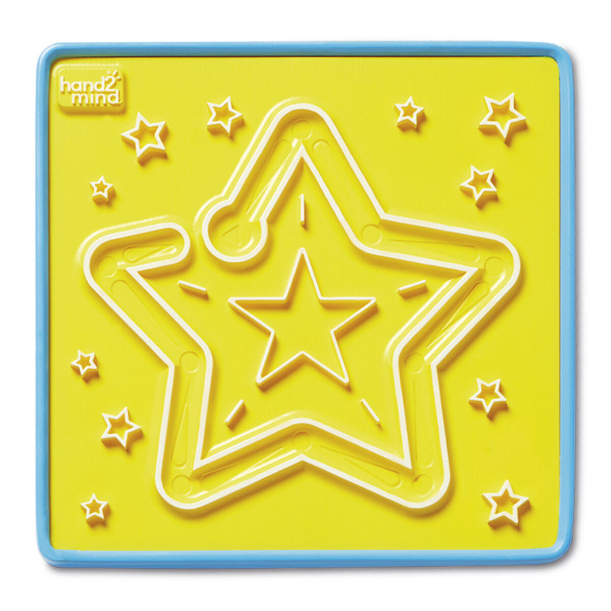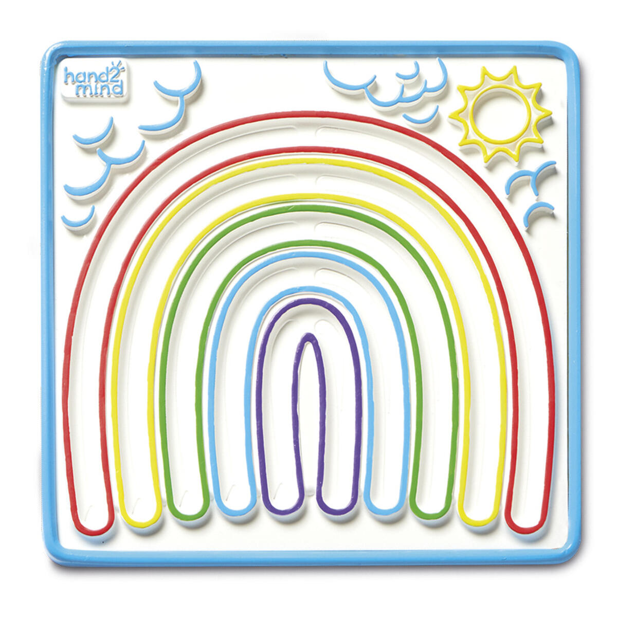 Med dessa labyrinter tränar man sin andning för att kunna hitta fokus och lugn. Barnen använder sitt pekfinger och följer spåret och andningsmönstret. Det finns 6 mönster att välja mellan, t.ex. Regnbågsandning, kvadratandning och stjärnandning. Mått: 18x18 cm. PVC-fri. Från 3 år.