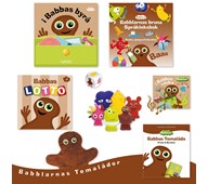 Ett paket med de populära XL-böckerna från Babblarna. Hållbara för de minsta att bläddra i själva och stora så att många kan titta samtidigt. Innehåller: I Bobbos väska, Var är Babbas saker, Dadda hälsar på, I Babblarnas hus, Fingerresan och I Babbas byrå.