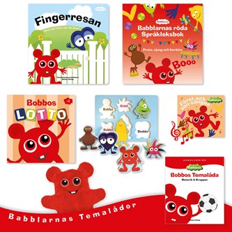 Babblarnas temalådor är inspirerande paket för språklek på ett specifikt tema förankrat i förskolans läroplan. I Bobbos språklåda är temat motorik och kroppen. Materialet ger begrepp för kroppsdelar, vad man kan göra med kroppen samt leker med rösten. Lådan innehåller en stor kartongbok ”Fingerresan”, en Språkleksbok med härliga uppslag för språkutvecklande aktiviteter, en sång med tillhörande sånglek, ett lottospel, Bobbo som handdocka och ett formpussel med Babblarna som tjocka pusselbitar. Materialet levereras med en lättläst och tydlig handledning.