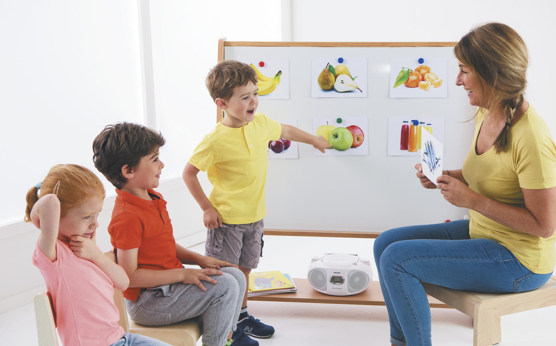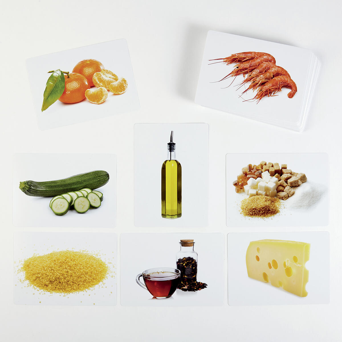70 kort 21x15 cm. Vackra bilder på mat för att utöka ordförrådet. Kort i 7 kategorier: frukt och grönsaker, gryn och baljväxter, mejeriprodukter, kött, fisk/ägg, sötsaker och drycker. Från 2 år.