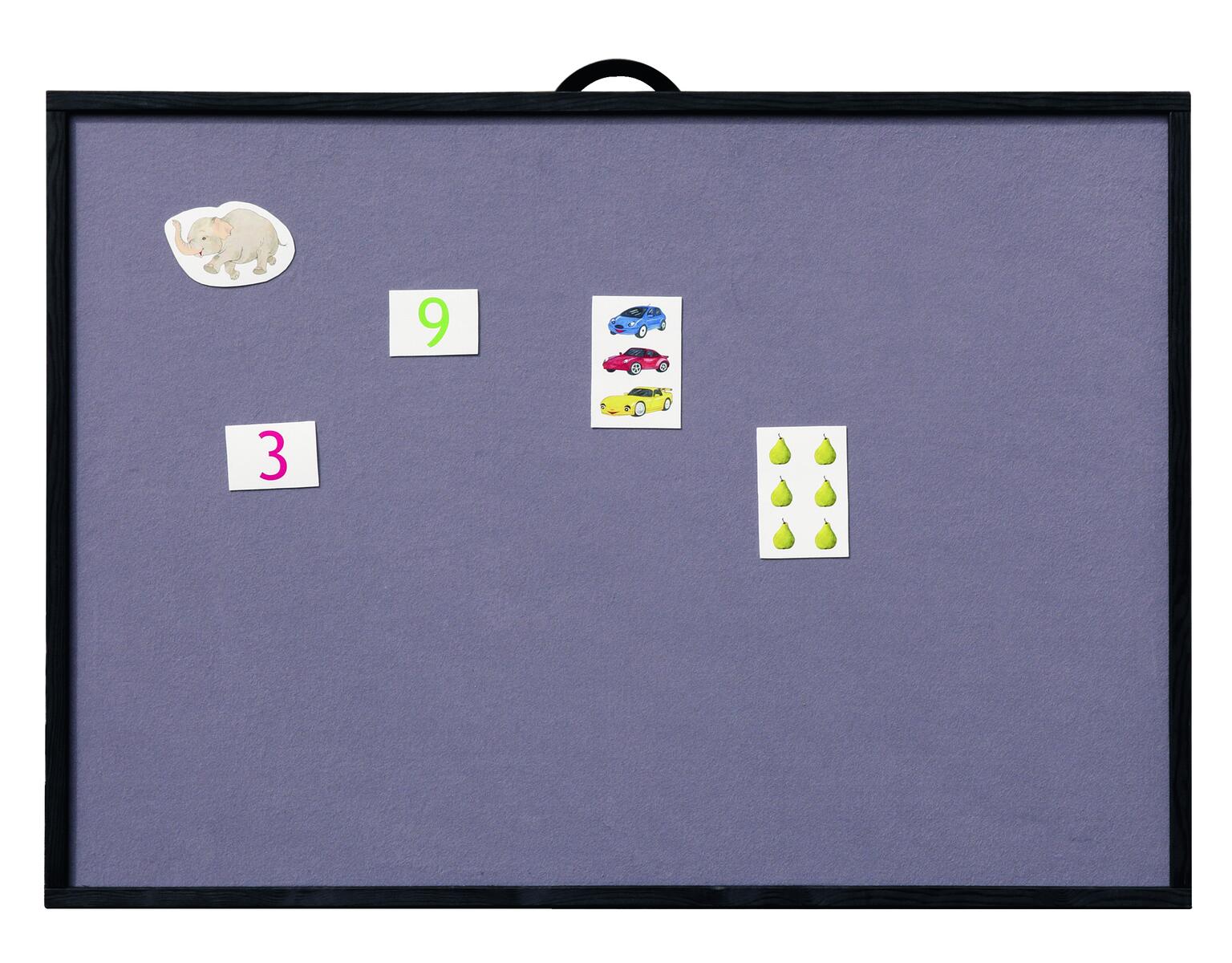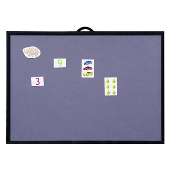 En flanellograftavla klädd med grå filt och svart träram. Med stödben på baksidan så att den kan stå fritt, samt svart upphängningsband om man vill hänga den på väggen. Mått: 90x80 cm. Av 3 mm MDF-skiva. PVC-fri.