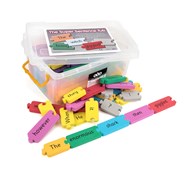 Bygg engelska ord snabbt genom att använda alla sidorna på kuberna inom två minuter. Tjäna poäng för varje rättstavat ord. Flest poäng vinner! Utvecklar elevernas stavningsteknik med ordfamiljer, ord, mellanslag och punkt. För 2-4 spelare. PVC-fri.