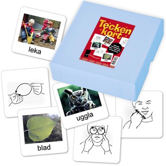 396 ord i tretton kategorier samlade i en låda. Teckenkorten har bild och text på ena sidan och teckenillustrationen på andra. Korten är tryckta på tjockt papper. Går att använda som de är eller lamineras för ökad hållbarhet. Storlek: 60x60 mm. Korten är uppdelade i olika kategorier: leksaker, verb, fordon, kläder, djur, natur, färger, mat&dryck, förskola, hemma, månader och veckodagar. Tips! Gör hål i hörnen på korten och sätt ihop till snurror med snäppringar. Toppen att hänga i fikarummet, på toa eller på en krok på kylskåpsdörren.