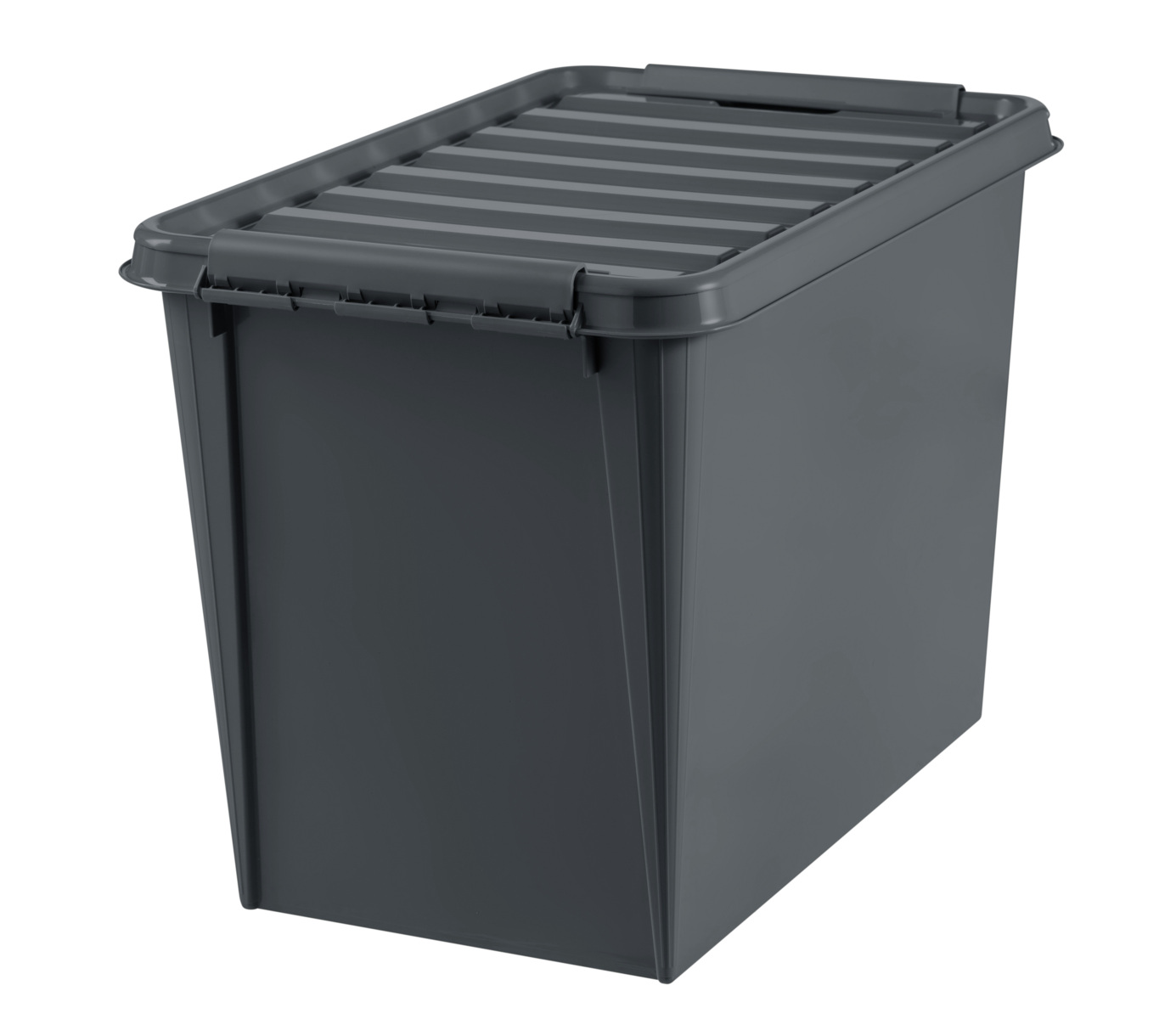 Av 100 % återvunnen plast. Förvaringsbox med lock och snäpplås. Klarar temperaturer mellan +100 grader C och -40 grader C. Mått: L59xB39xH31 cm. Mörkgrå. Säljs styckvis.