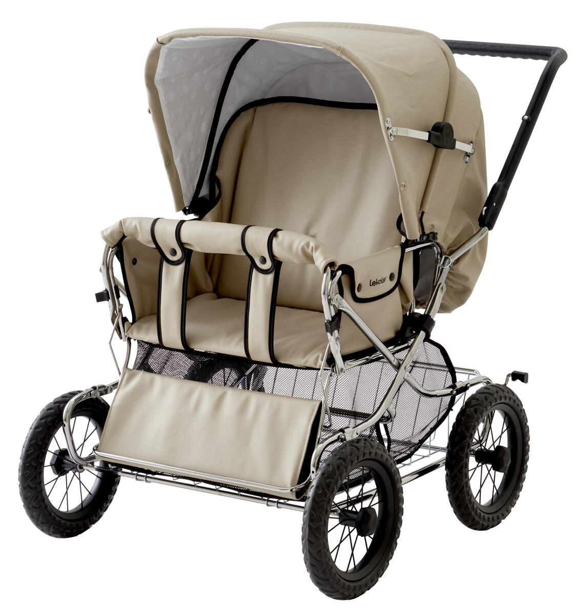 Vår populära syskonvagn för förskolan i en klädsel av polyuretan, som är lätt att torka av. Vagnen levereras komplett med sufflett, fotsack, punkteringsfria däck och fyrhjulsfjädring för bättre komfort. Hjulen är avtagbara vilket förenklar rengöring och transport av vagnen. Hjulen är även försedda med kullager vilket gör vagnen lätt att köra. Vagnen har en fällbar frambåge som du enkelt kan lossa för att lättare kunna lyfta i och ur barnen. Ryggen är fällbar till liggläge. Handtaget är höj- och sänkbar i fem olika lägen från 94-103 cm. Barnsele ingår. Vagnen har Oeko-Texcertifierad klädsel, klass 1 som är PVC-fri. Maxvikt i vagnen är 2x22 kg och varukorgen 10 kg.