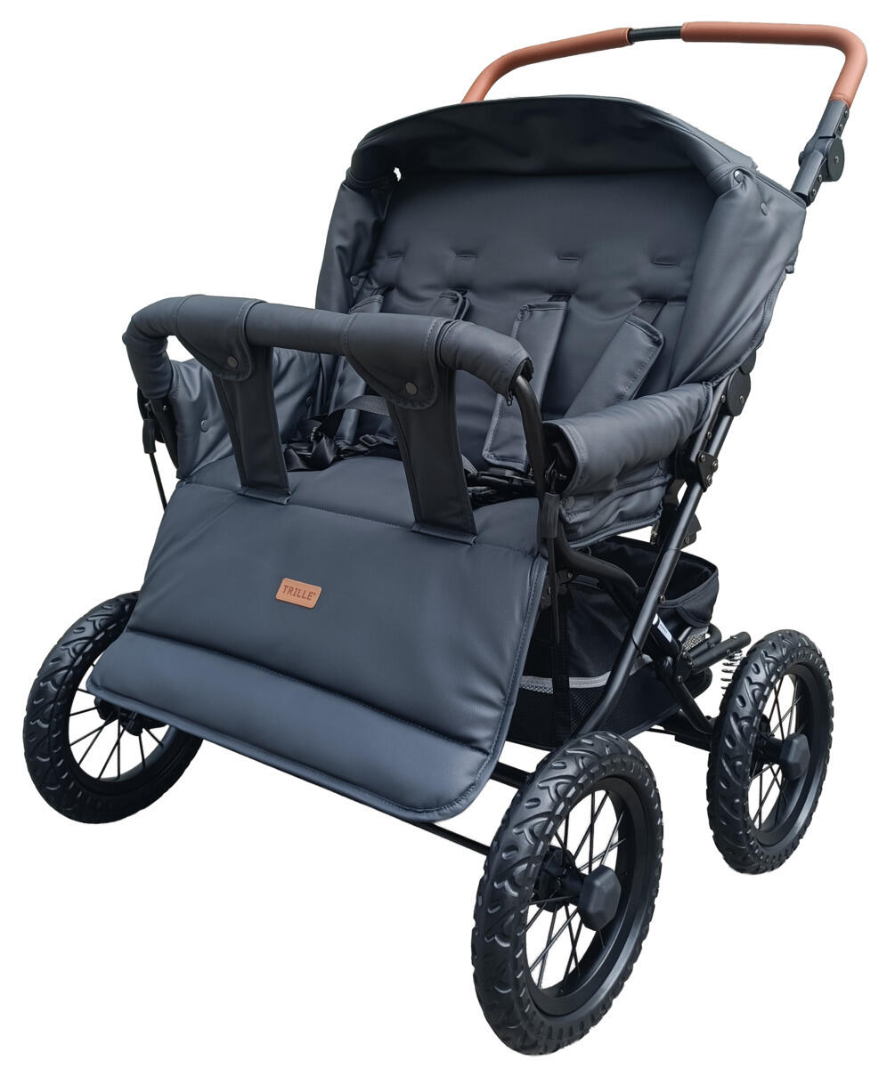 En smidig syskonvagn med reglerbart rygg- och fotstöd. Sitt- och viloläge. Levereras komplett med 5-punktssele, punkteringsfria däck och svartlackerat chassi. Vagnen har mjuk bakhjulsfjädring. Använd alltid barnsele och håll alltid uppsikt över barn som sitter i en barnvagn. Med avtagbar båge fram och rymlig varukorg. Skjutstången är reglerbar i höjd 89–109 cm. Styrets höjd 77–110 cm. Oeko-Texcertifierad PU-klädsel som är lätt att rengöra. Mått: L87xB82xH106 cm.