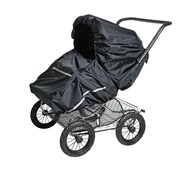 Regnskydd för syskonvagnar. Med kardborrband och reflex. Regnskyddet har en stor öppning fram för att enkelt hjälpa barnen in eller ut. Passar till alla våra syskonvagnar med sufflett. Av nylon.