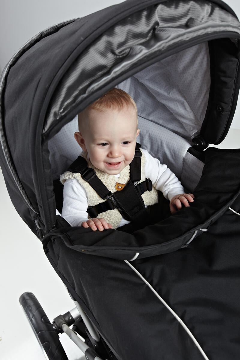 Denna sele är utvecklad i samarbete med barnomsorgen för att ge dig användarvänlig sele med hög säkerhetsklass. Selen har kraftiga spännen som lätt kan fästas i haken på bottenplattan. Den är tillverkad av extra mjuka material som andas, så att barnen inte blir svettiga i selen. Enkel att justera och har mycket bra passform. Av bomull. Lagom för åldrarna 6–36 månader.