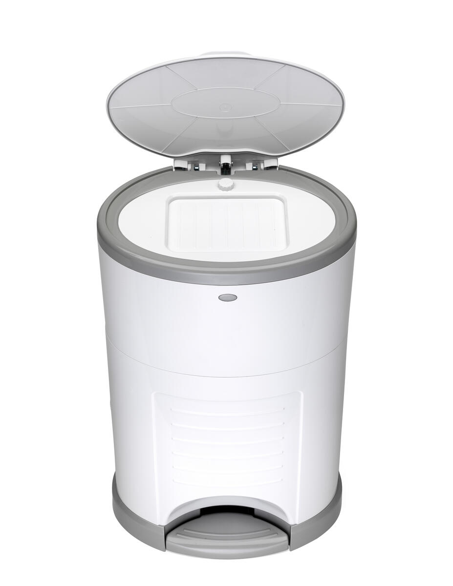 Hinken är mycket enkel att använda: tryck ner blöjan i öppningen och en kolv pressar ner blöjan i hinken. Twist & Seal-systemet snurrar in och förseglar varje blöja i kraftig plast som dödar 99 % av alla illaluktande bakterier. Hinken rymmer upp till ca 28 blöjor.