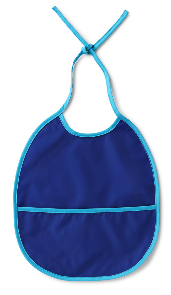 1 st. Haklapp av mjuk livsmedelsgodkänd TPE-plast i blandade färger. Den mjuka plasten gör att du lätt kan rulla ihop och ta med haklappen på utflykten. Mått: 27x23 cm. Klarar diskmaskin i 60 °C, skall läggas i den övre delen av diskmaskinen.