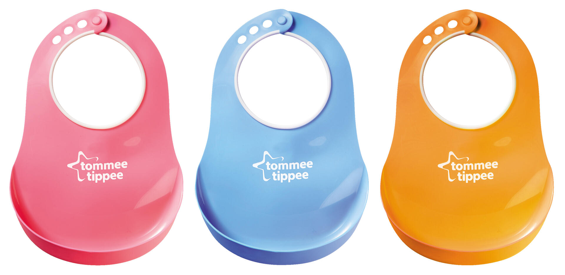 En styvare haklapp som är praktisk och lätt att rengöra under rinnande vatten eller i diskmaskin. Justerbar halsknäppning. Säljs i styck i blandade färger. Av LDPE-plast. Från 6 månader.