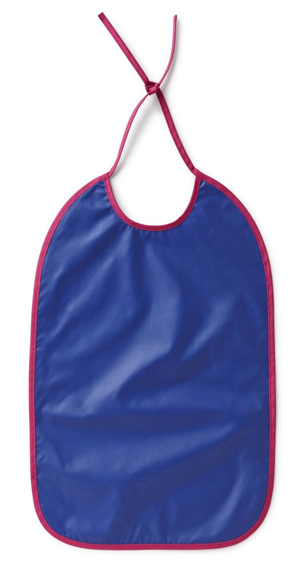En styvare haklapp som är praktisk och lätt att rengöra under rinnande vatten eller i diskmaskin. Justerbar halsknäppning. Säljs i styck i blandade färger. Av LDPE-plast. Från 6 månader.