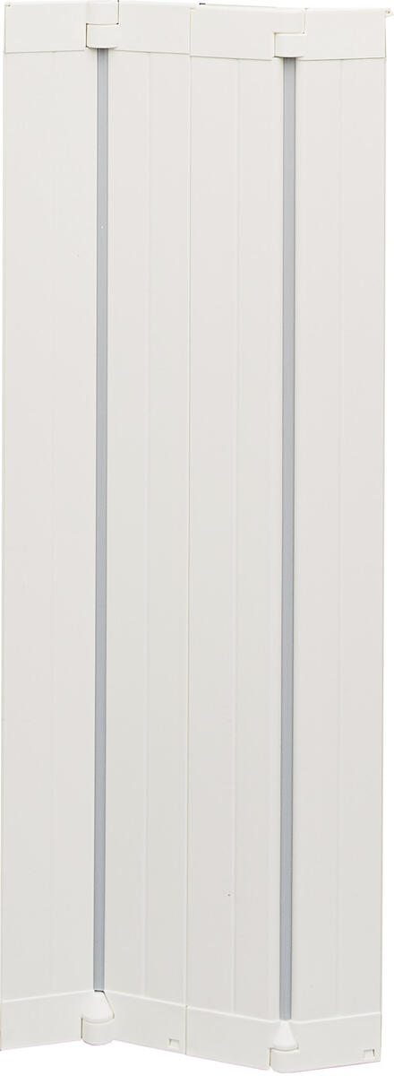 Väggmonterad säkerhetsgrind som passar till en bred och oregelbunden trappa, dörröppning eller som rumsdelare. Grinden går att öppna åt båda hållen med bara en hand. Mått: L90–146, H71 cm. Av PE och stål.