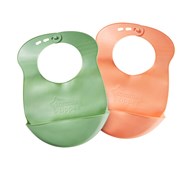 1 st. Haklapp av mjuk livsmedelsgodkänd TPE-plast i blandade färger. Den mjuka plasten gör att du lätt kan rulla ihop och ta med haklappen på utflykten. Mått: 27x23 cm. Klarar diskmaskin i 60 °C, skall läggas i den övre delen av diskmaskinen.